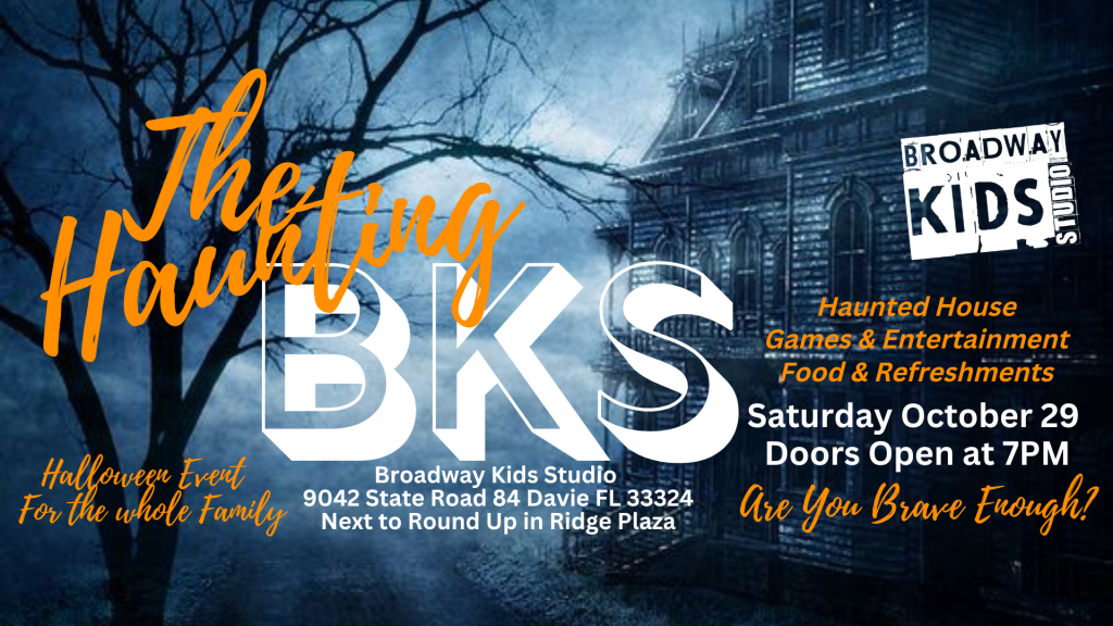 Come experience a Haunted House Event fun for the entire family! Visit Broadway Kids Studio on Saturday October 29th. Doors open at 7PM. $12/per person for one time entry or $20/per person for unlimited visits through our spooky Haunted House. Entertainment, food and refreshments will be available for additional purchase.